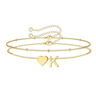 TINGN Gold Heart Bracelets for Women, 14K Plated Layered Initial K Bracelet Womens Teen Girl Gifts Teenage Girls Ladies Birthday Her Women Jewelry