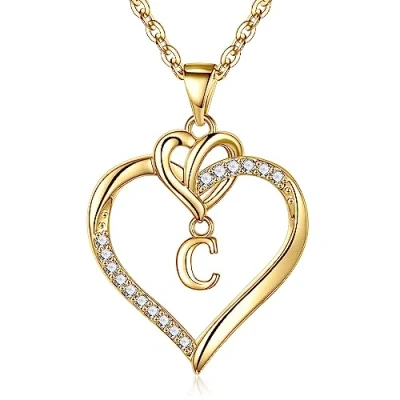 TINGN Gold Heart Initial Necklaces for Women Girls, 14K Plated C Necklace Dainty Girls Cute Jewelry Gifts