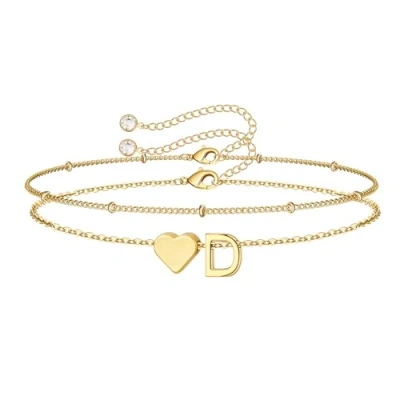 TINGN Gold Initial Bracelets for Womens, 14K Plated Layered Heart D Bracelet Tiny Girls Birthday Wedding Gifts Best Friend Women Teen Jewelry