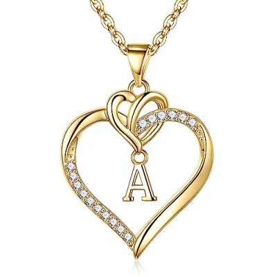 TINGN Heart Initial Necklaces for Women Girls, 14K Gold Plated A Pendant Necklace Dainty Teen Girls Jewelry Birthday Mothers Day Gifts Mom Wife