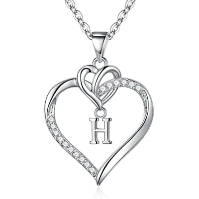 TINGN Heart Initial Necklaces for Women Girls, 14K White Gold Plated Cubic Zirconia H Pendant Necklace Dainty Teen Girls Jewelry Gifts Wife Girlfriend