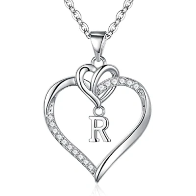 TINGN Heart Initial Necklaces for Women Teen Girls, Dainty R Pendant Necklace 14K White Gold Plated Girlfriend Jewelry Girls Gifts Mom