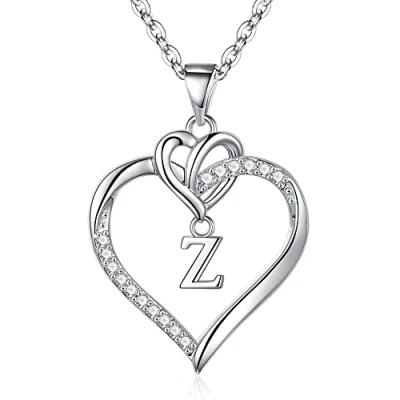 TINGN Heart Necklaces for Women Girls, Cubic Zirconia Pendant Necklace 14K White Gold Plated Initial Z Dainty Teen Girls Jewelry Gifts
