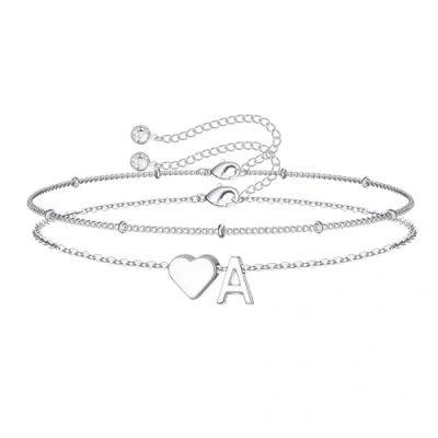 TINGN Initial Bracelets for Teenage Girls, 14K White Gold Plated Layered Heart A Bracelet Dainty Silver Womens Girl Jewelry Personalised Birthday Gifts Girls 13 15