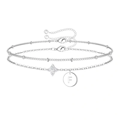 TINGN Initial Bracelets for Women, 14K White Gold Plated Bracelet Layered Beaded Personalized Disc Monogram Four Leaf Clover Women Teen Girls Lucky Jewelry Gifts