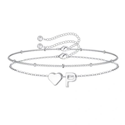 TINGN Initial Bracelets for Women Girls, 14K White Gold Plated Layered Heart Bracelet Dainty Womens Girl Jewelry Personalised Birthday Gifts Teenage Girls