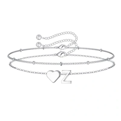 TINGN Initial Bracelets for Women Girls, 14K White Gold Plated Layered Heart Bracelet Dainty Womens Girl Jewelry Personalised Birthday Gifts Teenage Girls