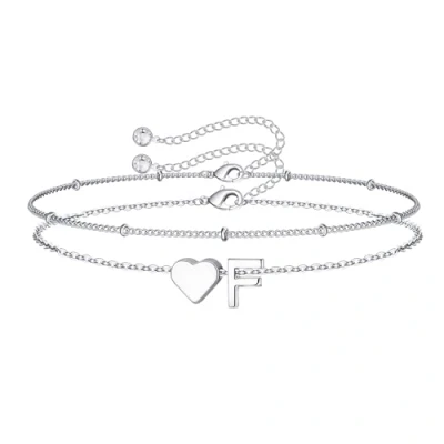 TINGN Initial Bracelets for Women Girls, 14K White Gold Plated Layered Heart F Bracelet Dainty Womens Girl Jewelry Personalised Birthday Gifts Teenage Girls