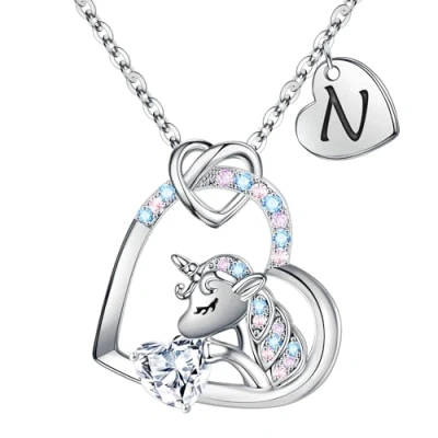 TINGN Unicorn Necklace for Girls, Unicorns Necklaces Teen Girls Little Jewelry Gifts N Initial