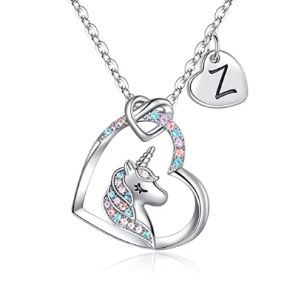 TINGN Unicorn Necklace Gifts for Girls 14K White Gold Plated CZ Heart Pendant Z Initial Age 6 8 Birthday Jewelry
