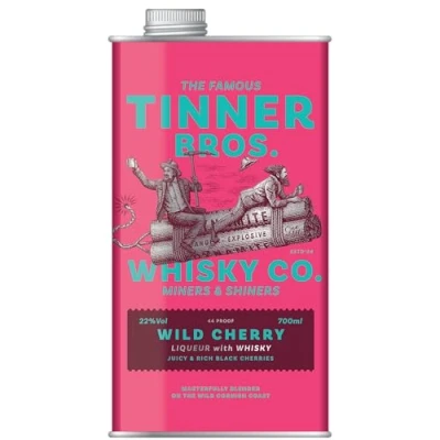 Tinner Bros Wild Cherry Premium Whisky Liqueur Bold & Juicy 22% ABV 70cl Gift Tin Enjoy Over Ice, Mixed with Cola or in Cocktails Smooth Alternative to Bourbon and Rum