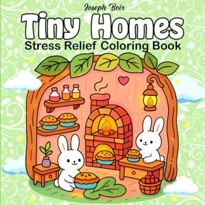 Tiny Homes: Stress Relief Coloring Book for Teens and Adults, Bold Easy Designs Relaxation