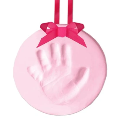 Tiny Ideas DIY Baby's Print Handprint or Footprint Keepsake No Bake Ornament with Ribbon, Baby Girl Nursery Décor, Pink