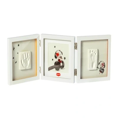 BABY KEEPSAKE: your baby has arrived and time will speed by - with this double photo frame clay kit you can cast 2 clay imprints of your newborn’s hands and feet, capturing their tiny prints forever as a keepsake that can be proudly displayed PREMIUM QUALITY: this baby hand and footprint kit includes air drying clay that is toxicologically and dermatologically tested and a high quality, durable double photo frame perfect for keeping your newborn clay prints safe for years to come ALL-IN-ONE KIT: contains all the materials you need to make the perfect baby art work - a foldable double photo frame, air drying clay, a roller, adhesive stickers and clear instructions - so you can start creating memories straight away PHOTO FRAME: the frame is designed to either stand on a table or hang on a wall, giving you multiple options for displaying your newborn's hand and footprint - with 3 frames, you can include 2 clay prints and 1 picture of your little baby TURN MOMENTS INTO MEMORIES: create lasting memories with your family with this adorable baby keepsake kit for baby’s little hands or feet - a special way to share unforgettable moments with your loved ones THE IDEAL BABY GIFT: a wonderful way for families and parents-to-be to celebrate new beginnings by crafting a unique and meaningful keepsake of those initial moments of awe and wonder - we can't stop time, but we can give you a memory forever TINY CREATIONS COLLECTION: discover our creative keepsake products to capture Moments of Wonder like Belly Kit, Family Prints, Christmas Ball, Single Frame, Round and Square Magic Box - all our products are dermatologically tested and customisable