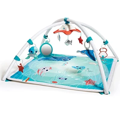 BABY PLAY MAT - suitable for babies from birth 2-IN-1 PLAY MAT FOR BABY - thanks to its adjustable arches and toys that enable multiple play modes STARFISH MOBILE CONVERTS INTO TUMMY-TIME TOY - with engaging melodies and light shows to help to extend tummy time ADJUSTABLE TOYS ON KIDS PLAY MAT - to change distance and create the right level of stimulation that baby needs BABY GYMINI HAS MAGICAL UNDERWATER DESIGN - including 18 fun activities to keep baby engaged with adorable underwater characters STIMULATE YOUR BABY'S DEVELOPMENT - through six essential skills (Tiny Love's Developmental Wonders) to support their journey of exploration PART OF THE TREASURE THE OCEAN COLLECTION