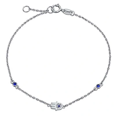 Add mystical beauty to your look with the spiritual aura of this delicate .925 silver cable chain bracelet. Highlighted by a dainty Hamsa motif with subtle, blue colored cz accents. Layer with other .925 silver jewelry for on trend, stacked style. Cable Chain, Spring Ring Clasp Measure: 7 inch L x 0.20 inch W, extension 0.5 inch L Weight: 1 gram Material: .925 Silver, Rhodium Plating, E-coating, Cubic Zirconia Affordable Alterative to Diamonds-Buy Cubic Zirconia: Show your love for the Earth and your sweetheart by choosing cubic zirconia jewelry gifts. Lab created CZ reduces social and destructive environmental impact caused by the mining of diamonds. CZ Jewelry is virtually flawless and only a jeweler can tell the difference. Thoughtful Gifts for Every Occasion: Whether it's Mother's Day, an Anniversary, Wedding, Birthday, Holiday, Stocking Stuffer, Christmas, Valentine’s Day, or Graduation, our exquisite jewelry is the perfect present. Ideal for expressing your love to your Sister, Mother, Grandmother, Daughter, Wife, Girlfriend, Aunt, Mum, Mommy, Grandma, or even for yourself. It's the ultimate gift for anyone special in your life. USA-Based Company with 30-Day After-Sale Service: We take pride in our craftsmanship and product quality. Rest assured, if you receive an item with manufacturing defects, we've got you covered. Click on the link to contact our friendly customer service.