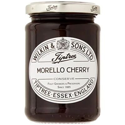 Easy to spread, enjoy this preserve on toast, biscuits, muffins, cheese, pastries or even as a cake filling. Ingredients: Sugar, Morello Cherries, Gelling Agent: Citrus Pectin; Acidity Regulator: Citric Acid. Gluten free, made in a nut free factory, suitable for vegetarians and vegans. 12 ounce jar. The Wilkin family has been farming in Tiptree, Essex, since 1757, and making quality preserves since 1885. Majority of the fruit used in Tiptree jars are grown on their own farm, ensuring fruit is hand picked with care at the most optimal time.