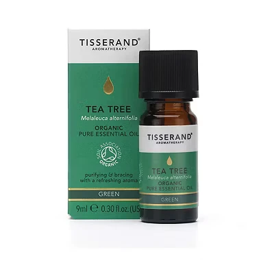 Organic Tea Tree pure essential oil 9 ml - 100 Percent Melaleuca Alternifolia Medicinal, fresh, green and strong penetrating aroma that is used mostly for its physical properties - blends well with Rosemary, Lemon, Eucalyptus and Lavender Combined with other medicinal, circulation-boosting oils, Tea Tree is ideal for supporting the body during winter month to treat cold, coughts and headaches, and a very useful addition to any family medicine cabinet for its antifungal properties HOW TO USE: Use in a diffuser/oil burner or in a homemade blend (with a carrier oil) to use as a facial treatment, body oil or bath oil Vegan and Cruelty free, Tisserand Aromatherapy products and ingredients are not tested on animals by or for Tisserand Aromatherapy and contains absolutely no parabens, synthetic fragrances or SLES/SLS
