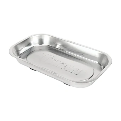 5-3/8" x 9-3/8" stainless steel dish Perfect for holding parts, hardware and fasteners in place Sticks to any ferrous metal surfaces - it even works upside down Non marring vinyl magentic base