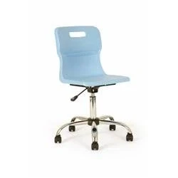 Senior swivel chair with a moulded ergonomic seat and chrome swivel base. Anti-tamper gas lift base allows user to adjust the chair to their height. Black vinyl castors. Classroom safe, anti-tilt. Conforms to ergonomic standard BS EN 1729.1.