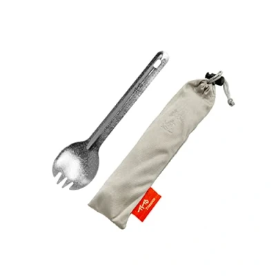 TiTo Bright Colorful Titanium Spork for Outdoor Camping Light Weight Spoon Travel Home with Cloth Bag (Titanium spork)
