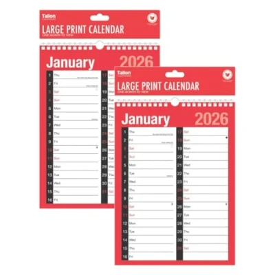 AmazonTIVADI 2026 Wall, Desktop Planners and Calendars (2026 Month To View Calendar A4 Large 2 Column Spiral Bound Wall Planner)