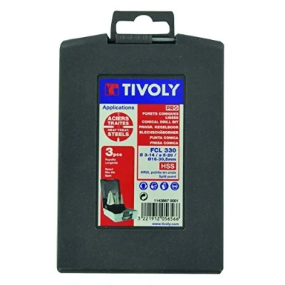 Applications: drilling and enlargement of holes in thin sheet steel, aluminium, plastic. Fast and effortless drilling High speed steel tools for superior durability Self-centring sharpening Protective ABS case, Manufacturer: Tivoly