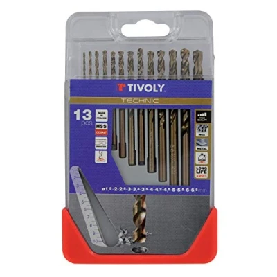 Tivoly 11468570006 Clipster Set of 13 Metal Drill Bits HSS Cobalt Technic Diameter 1.5 to 6.5 mm + 3.3 4.2