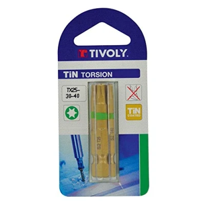 Set of 3 Torsion Screw Bits for Torx Screws Tx25-30-40 Length: 50 mm. Screwdriver bits Colour : gold, Manufacturer: Tivoly