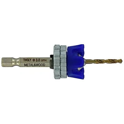 TIVOLY patented special terrace kit with 3 mm diameter consisting of a HSS drill bit with interchangeable hexagonal shank for drilling and chamfering 90° for hard wood, steel, aluminium, cast iron and plastics for intensive and repetitive use + walnut cutter + adjustable stop. Includes a key to change the drill bit quickly without hassle. Mounted on 1/4" hex adapter for mounting on a screwdriver. Professional high quali product 2-in-1 application: 90° drilling and milling for screw head housing in one operation. Practical: the adjustable depth stop allows precise and series drilling Drill and HSS cutter: can be used for drilling hard wood and metal, Weight: 0.08157103694 Pounds, Manufacturer: Tivoly