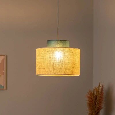 TK Lighting Duo pendant light, jute shade, petrol/natural brown, Ø 38 cm