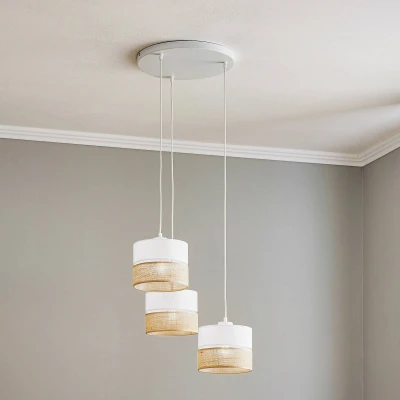 Linobianco pendant light: elegance meets 3-bulb design for atmospheric lighting The Linobianco pendant light combines modern design with natural materials such as jute, fabric, metal and plastic. This combination gives the light a unique aesthetic that blends harmoniously into various living spaces such as the living room, kitchen or dining room. The 3-bulb construction ensures even illumination and creates a pleasant atmosphere that is suitable for both relaxation and work. A special feature of the Linobianco is its European-made quality, which stands for durability and precision. The light is available in white and brown, giving it a timeless elegance. In addition, the option of external dimmability offers flexibility in lighting design, although an external dimmer is required. This light is not only a functional lighting element, but also a stylish highlight in any room.