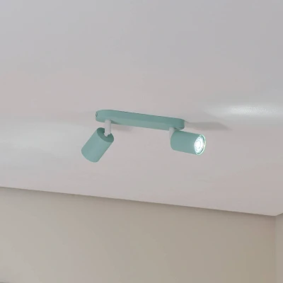 Livia ceiling spotlight: stylish lighting with European manufacturing The Livia ceiling spotlight in mint green combines stylish design with high functionality. Made from robust steel and plastic, this spotlight offers a durable and reliable lighting solution. The two GU10 sockets enable targeted illumination, which is ideal for use in children's rooms. Manufacturing in Europe guarantees the highest quality standards and careful workmanship. A special feature of the Livia ceiling spotlight is that it can be dimmed using an external dimmer, allowing the light intensity to be adjusted flexibly. This allows you to customise the lighting atmosphere to suit any mood and occasion. The mint green colour gives the room a fresh and modern touch that blends harmoniously with various interior styles.