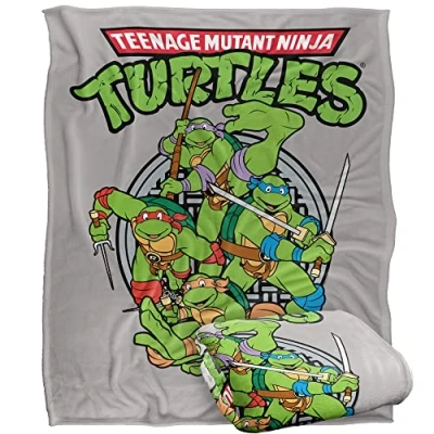 TEENAGE MUTANT NINJA TURTLES SILKY TOUCH BLANKET - 300 GSM fabric provides warmth and comfort yet is lightweight and breathable, that will make a great decorative addition to any room SHRINK & FADE RESISTANT - This design has amazing color vibrancy and is crafted from 100% polyester that is super soft and long lasting SIZE: 152 x 127 cm - Microfiber fleece fabric with double overlock stitch to create ultra-fluffiness and durability; machine washable; tumble dry low The designs are created by our incredibly talented in house graphic art team who often hand draw and illustrate each design GREAT FOR GIVING - The optimal gift for the littlest fan in your life, our high quality collectible merchandise brings the finishing touch to themed events, parties, birthdays, holidays, baby showers, and special occasions