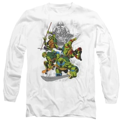 TMNT Shredder and Turtles Comic Mens Long Sleeve T Shirt, White, Medium