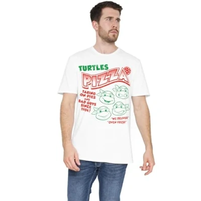 TMNT Turtles Pizza Unisex T Shirt, White, X Large
