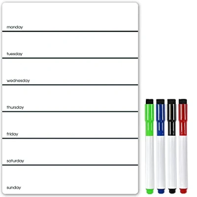 TMS A4 Magnetic Weekly Planner and Dry Wipe Pens, Fridge Whiteboard Meal to Do List Erase Memo Board or Calendar for Notes Daily Reminder (Black, + 4 Pens)
