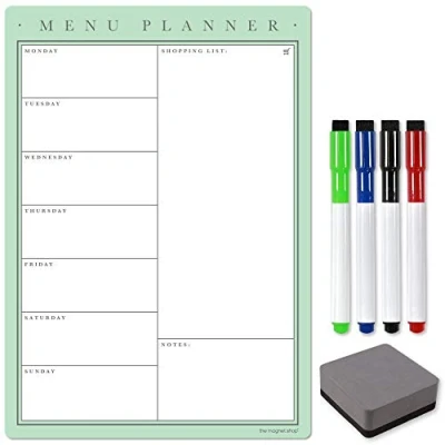 TMS Magnetic Weekly Meal Planner A4, Whiteboard Planner, Shopping List and Menu Organiser with 4 Dry Erase Pens Eraser Wipe Fridge Calendar for Daily Notes Reminders (Pistachio, A4)