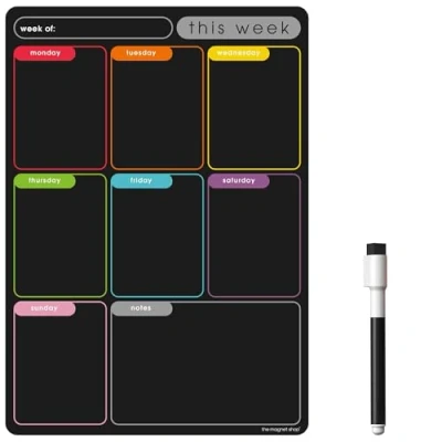 Amazon WHAT YOU GET – A multifunctional magnetic whiteboard designed to be a magnetic weekly meal planner. Flexible, with a fully magnetic backing and premium dry erase finish, this memo board is suitable for use in a variety of environments such as at home, school or in the office. Each purchase comes comes with a black magnetic pen that has its own mini eraser on the lid. FULLY CUSTOMISABLE – These magnetic boards will be available in 2 sizes. Each boards has multiple sections to write daily meals, tasks or chores as well as a larger area for your shopping list and even an additional notes section. There’s plenty of space for each day of the week. Organising your life couldn’t be simpler! VERSATILE – The various colour designs and magnetic backing means it'll fit with any home or office décor and stick to many metal surfaces. Use the coloured pens to make important notes or memos stand out. The dedicate shopping list is a great way to ensure you do not spend unnecessary extra time in a supermarket looking for items you don’t need; this will help you stay safe during lockdown! ARTISAN SCREEN PRINTING – Made in the UK from fine materials so you can be sure your new magnetic memo board will last a lifetime. Our whiteboards are made in a 3 layer process; flexible magnetic base, followed by premium paper, screen printed by hand to the highest standards and finished with a specialist gloss ensuring a long lasting dry wipe surface. We work with ethically audited suppliers to ensure our products are made from sustainable materials, so buy with confidence! QUALITY CONSTRUCTION – Made in the UK from premium materials so you can be sure your new magnetic memo board will last a lifetime*. Our whiteboards are made in a 3 layer process with a flexible magnetic base, followed by state of the art digital printing on premium paper, and finished with a specialist gloss. All of which ensures a long lasting dry wipe surface. We also work with ethically audited suppliers to ensure our products are made from sustainable materials, so buy with confidence!