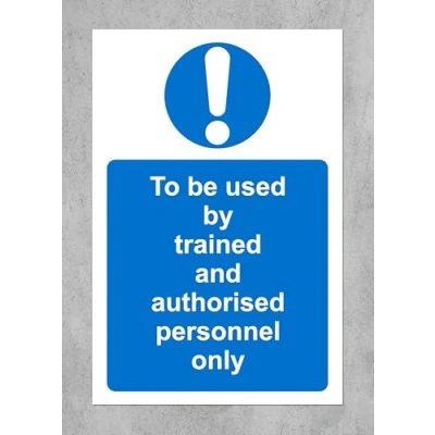 To be used by trained and authorised personnel only safety sign 1.2mm rigid plastic 300mm x 200mm Digitally printed and laminated for extra durability Drill and screw in position or use double sided tape to mount onto suitable surface.