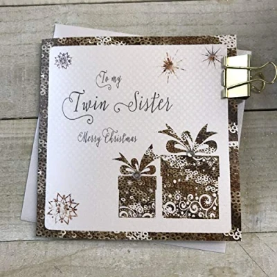 TO MY TWIN SISTER AT CHRISTMAS PRESSIES HANDMADE CARD by WHITE COTTON CARDS