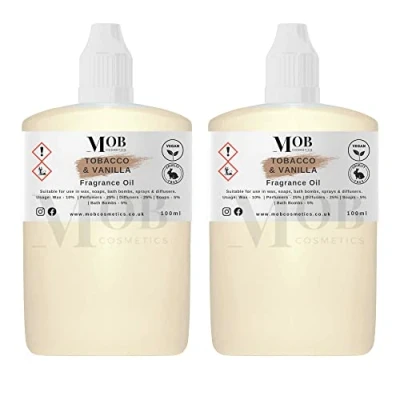 Tobacco and Vanilla Luxury Designer Fragrance Oil Highly Concentrated Perfect for Candles, Soaps, Bath Bombs, Diffusers, Wax Melts UK Made Vegan (Tobacco Vanilla, 100ml (Pack of 2))