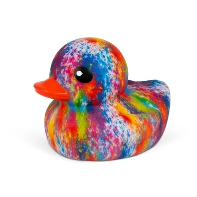 Brighten up bath time or your desk with the Tie Dye Rubber Duck This vibrant twist on the classic rubber duck features an eye-catching rainbow design that’s sure to stand out. Crafted from slightly squishy plastic, it mimics the feel of a traditional bath duck while adding a splash of colour to your day Measuring approximately 12cm, it’s perfect for play, display, or as a quirky gift for duck enthusiasts. Whether you're floating it in the tub or perching it on a shelf, the Rainbow Duck is a quackers addition to any collection! A great gift for boys and girls ages 3+, Manufacturer: One For Fun