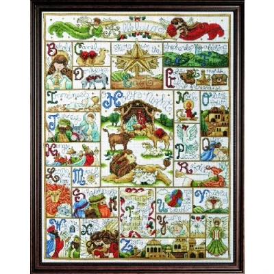 Counted Cross Stitch Christmas Sampler Kit Design Area 16 x 21 inches Stitched on 14 count white Aida fabric 100% Cotton Embroidery Floss, beads, sequins Fully Illustrated Chart and Instructions
