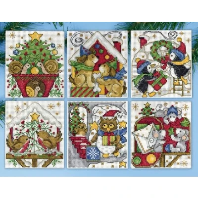 Tobin Home for Christmas Cross Stitch Ornament Kit, Cotton, 8.9 x 10.2 cm, 14 Pieces, 6 3 1/2" 4"