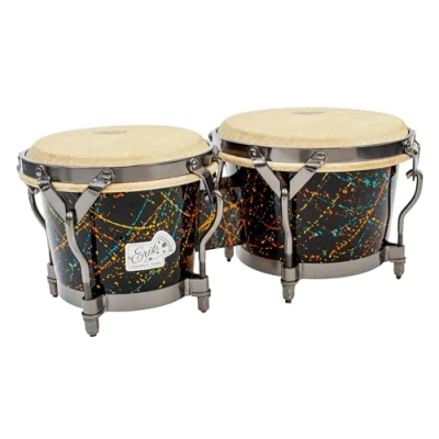 High-quality materials for superior sound: The Toca Bongo Erik Piza combines robust fibreglass shells with high-quality Remo synthetic skins for a powerful and clear sound. Versatile: with sizes ranging from 7‘ to 9’, this bongo offers an ideal range of sounds, perfect for beginners and professionals alike. Stylish design with a unique look: the shiny black surface with splashes of colour and elegant black mirror chrome hardware make the bongos a visual highlight. Traditional construction for authentic sound: the classic Traditional Hoops provide stable tuning and a traditional playing feel that musicians appreciate. Tuning stability: high tuning stability for consistent, clear sound with every use.