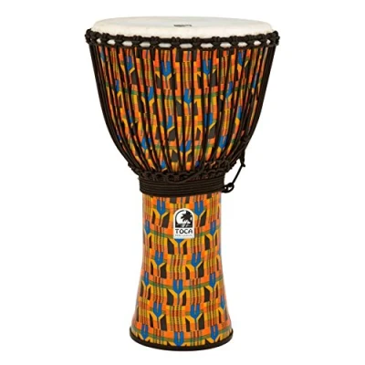 AmazonFinish: Kente Cloth with Bag - SFDJ-14K, Size 14" Low stretch Alpine rope with braided cores producing a rich bass tone with sharp, piercing rim tones and ensures stable tuning Toca Djembe Freestyle Rope Tuned Height: 26" (66 cm)