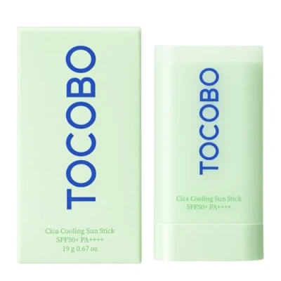 Tocobo Cica Cooling Sun Stick SPF50+ PA++++ is a vegan, non-comedogenic sunscreen stick offering broad-spectrum sun protection, a refreshing cooling sensation, and deep hydration with 10 types of hyaluronic acid. Infused with centella asiatica and niacinamide, it soothes, nourishes, and is suitable for all skin types, even over makeup.