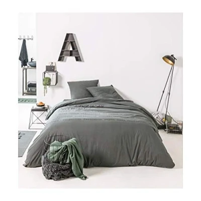 A soft and cosy duvet cover set for a good night's sleep Dimensions: 1 duvet cover 260 x 240 cm and 2 pillowcases 63 x 63 cm, suitable for a double bed. 100% cotton (57 threads) and easy care Care : wash at 40 °C / wash the item only for the first time The small plus: its hand slots for ease of placing the duvet and its concealed button closure for a neat finish.