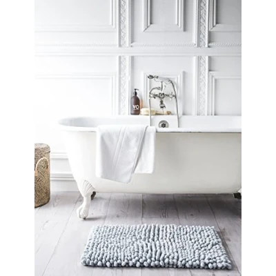 AmazonElegant and especially very nice, this rug will dress up your bathroom as it should. Light grey colour (available in 6 colours) Dimensions: 50 x 80 cm. 100% cotton. The small +: its high quality ultra fluffy texture is made of natural vegetable fibres.